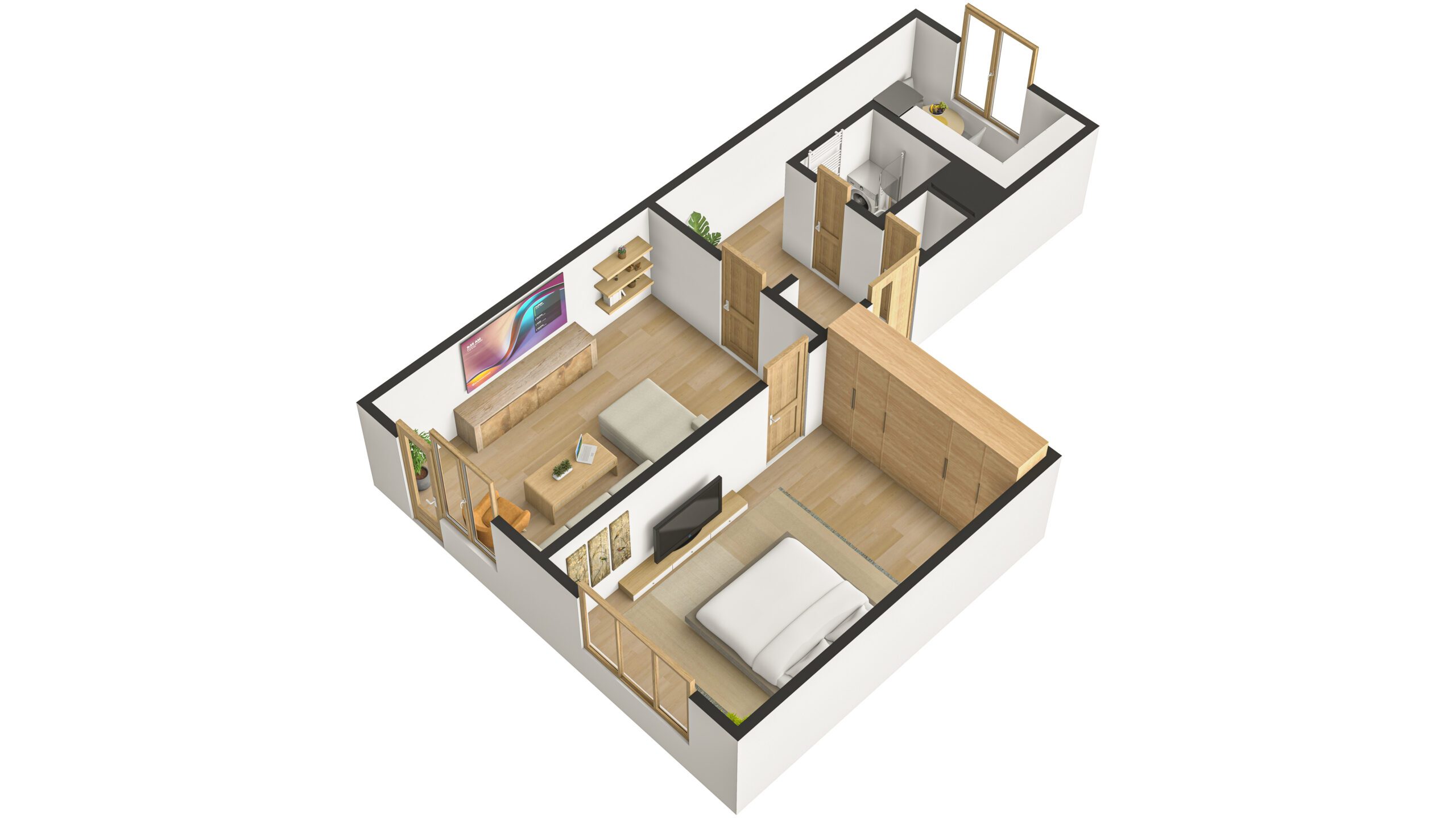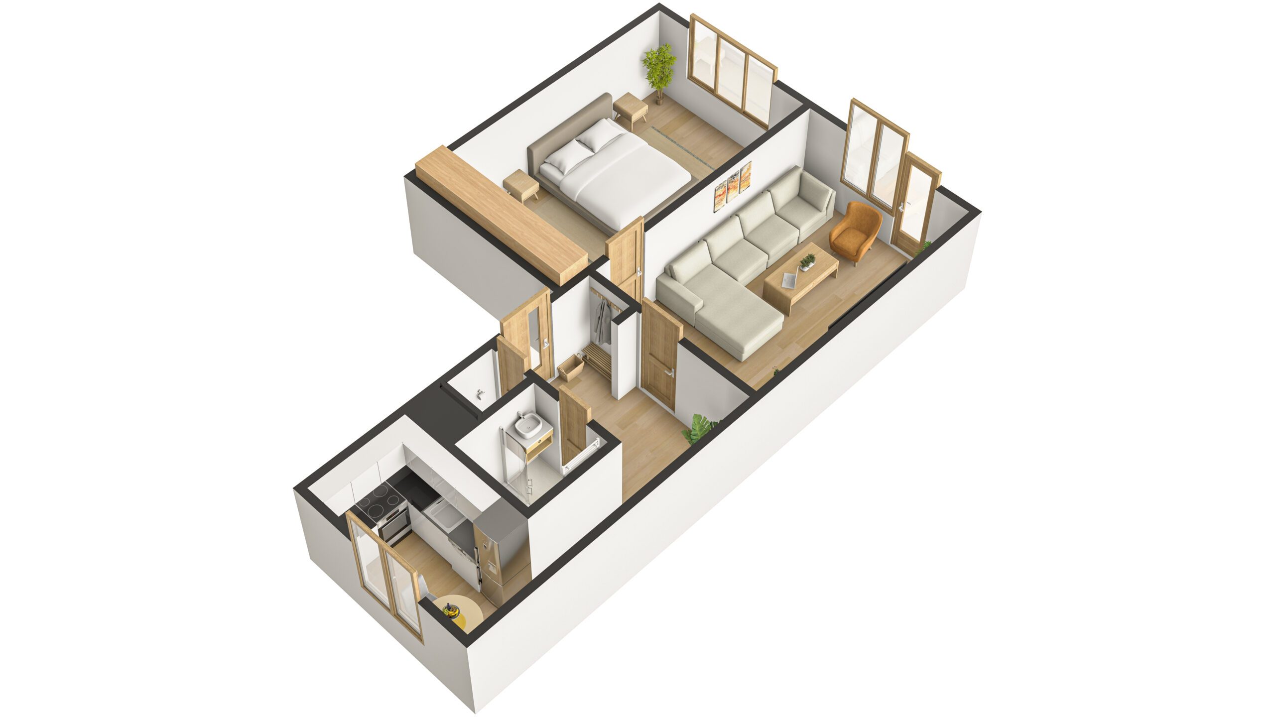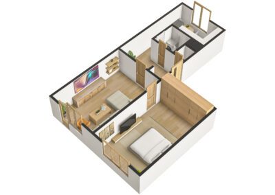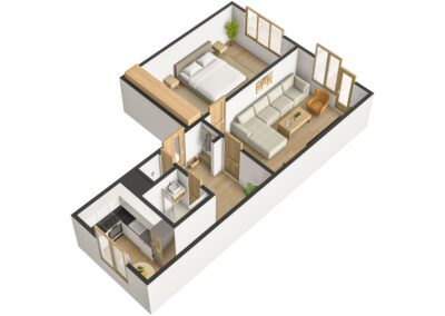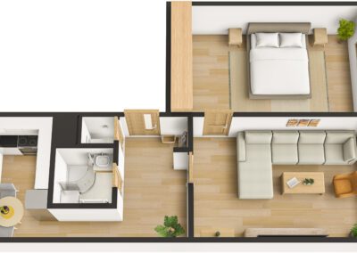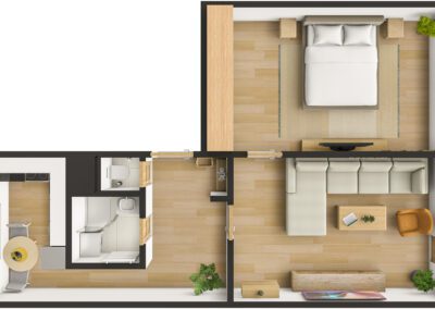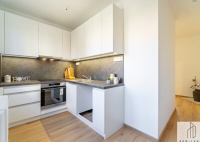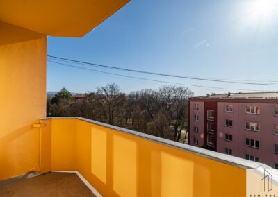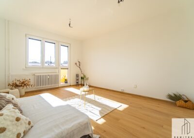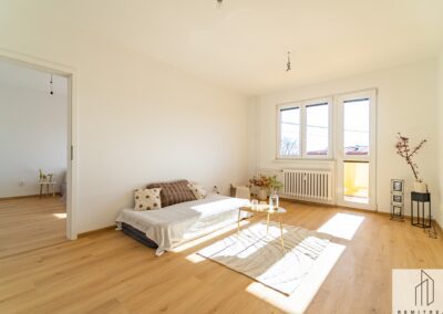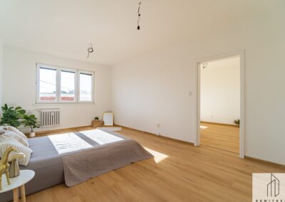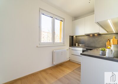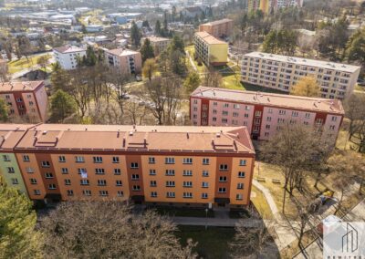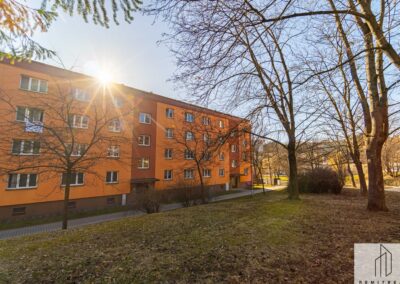 Bytová jednotka prošla v roce 2025 rekonstrukcí. Nachází se ve 4. (předposledním) nadzemním podlaží panelového bytového domu bez výtahu. Z chodby vede vstup do obývacího pokoje s lodžií, na něj pak navazuje ložnice. Díky orientaci na jihozápad jsou pokoje velmi světlé. Z chodby dále vede vstup do koupelny se sprchovým koutem a prostorem pro umístění pračky a do samostatného WC. Poslední místností bytu je kuchyně s novou kuchyňskou linkou s orientací na severovýchod. Vybavení kuchyňské linky zahrnuje nové elektrospotřebiče jako digestoř, varnou desku a troubu, dále nový nerezový dřez s odkapávačem. Ponechán je zde prostor pro myčku nádobí a lednici.